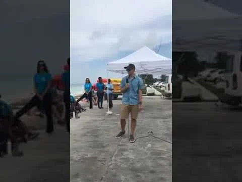 Angelina Rahming, EARTHCARE Eco  Kids Team Leader, hands beverage bottles found underwater to her brother,  Aiden for proper disposal onshore..jpg